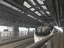 Min Buri Market station (Thai: สถานีตลาดมีนบุรี, RTGS: Sathani Talat Min Buri) is a Bangkok MRT station on the Pink Line. The station is located on Sihaburanukit Road in Min Buri district, Bangkok.[1] The station has four exits and serves Min Buri district office and Min Buri Market.[2] It opened on 21 November 2023 as part of trial operations on the entire Pink Line.[3][4]