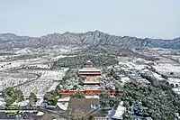 ![]() Dagong gate (Red in the middle) and Spirit way of the Ming tombs (behind the gate). | |