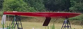 The Minisail has always been a semi-development class, and a number of variants appeared quite quickly in the early years. There are two basic hull shapes; one has a shallow V-shape at the bows, whilst the other is slightly shorter and is flat-bottomed, making it easier to construct at home in plywood. Many hulls were manufactured in GRP.[9] The original Monaco Mk.1 Minisails had no cockpit, just a shallow depression. Later, the Monaco Mk.2 appeared which had a centre cockpit; later still, the MiniSprint appeared which had a self-draining cockpit extending to the stern and a pivoting centreplate in place of the earlier dagger board.