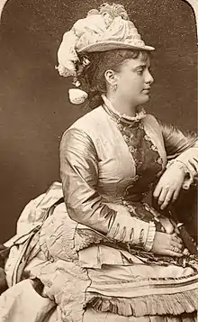 The same year she traveled to the US with the company and made her debut as an actress at Maguire's Opera House in San Francisco as the title character, Eily O'Connor, in Dion Boucicault's The Colleen Bawn.[4] She remained with that company until the California Theatre opened on 18 January 1869, when she was engaged there, where she remained until late 1870.[3]