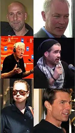 Members of the cast of Minority Report. Clockwise from top left; Stormare, McDonough, Farrell, Cruise, Morton, and Von Sydow.