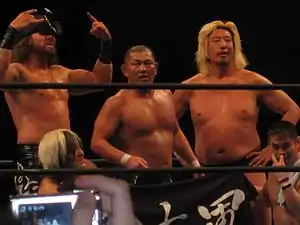 In February during the NJPW New Years Golden Series, Suzuki lost the Provisional KOPW 2022 trophy to Toru Yano in a Dog Cage match.[105] The following month, Suzuki competed in the New Japan Cup, receiving a bye to the second round, but lost to Hiromu Takahashi.[106] On April 1 at Lonestar Shootout, Suzuki defeated Killer Kross.[107] In April at Windy City Riot, Suzuki faced Tomohiro Ishii in a losing effort.[108] The following month at Capital Collision, Suzuki lost to Brody King.[109] In June at AEW x NJPW: Forbidden Door, Suzuki teamed with Jericho Appreciation Society members, Chris Jericho and Sammy Guevara to defeat the team of Wheeler Yuta, Shota Umino and Eddie Kingston.[110] In November, Suzuki teamed with Lance Archer for the 2022 World Tag League, finishing with 8 points, failing to advance to the finals. At the World Tag League and Super Junior Tag League finals, Suzuki announced that Suzuki-gun will disband at the end of 2022.[111] The factions final match took place on December 23, where the team of Douki, Kanemaru, Sabre, and Taichi defeated Archer, Desperado, Michinoku, and Suzuki.[112] After the match, all members spoke about their memories as a part of the group and thanked Suzuki. The night ended with all members posing with the Suzuki-gun flag, only to be interrupted by former member Takashi Iizuka, causing all 9 men to pose in the ring, behind the Suzuki-gun flag.[113]