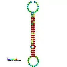 The miR-1 microRNA precursor is a small micro RNA that regulates its target protein's expression in the cell. microRNAs are transcribed as ~70 nucleotide precursors and subsequently processed by the Dicer enzyme to give products at ~22 nucleotides.[1] In this case the mature sequence comes from the 3' arm of the precursor. The mature products are thought to have regulatory roles through complementarity to mRNA. In humans there are two distinct microRNAs that share an identical mature sequence, and these are called miR-1-1 and miR-1-2.