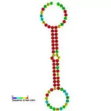 The miR-26 microRNA is a small non-coding RNA that is involved in regulating gene expression. The miR-26 family is composed of miR-26a-1, miR-26a-2 and miR-26b located in chromosomes 3, 12 and 2, respectively.[1] Pre-miR-26 with stem-loop structure is processed into mature miR-26 by a series of enzymes of intranuclear and intracytoplasm. The mature miRNA of miR-26a-1 and miR-26a-2 possesses the same sequence, with the exception of 2 different nucleotides in mature miR-26b.[2] miR-26 appears to be a vertebrate specific microRNA[3][4] and has now been predicted or experimentally validated in many vertebrate species (MIPF0000043).