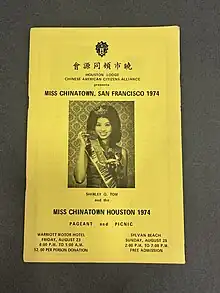 Miss Chinatown Houston was a beauty pageant founded by the Chinese American Citizens Alliance Houston chapter with the first pageant being held in 1971 in La Porte, Texas.[1] Miss Chinatown Houston is part of the greater Miss Chinatown USA pageants, the first of which was held in San Francsico, where the first Chinatown was established.