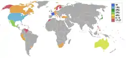 The 1953 edition saw the debuts of Austria and Switzerland, and the withdrawals of Chile, Cuba, Great Britain, Hong Kong, India, and Israel after their respective organizations failed to hold a national competition or designate a contestant. Singapore was also set to compete in this edition.[9] However, the Miss Singapore contest was postponed to next year due to lack of time and preparation.[10][11]