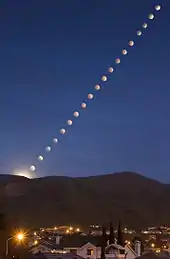 A lunar eclipse (shown in time lapse composite) rises over Mission Peak in Feb. 2008