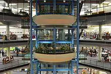The Mississauga Central Library is located in the city centre at 301 Burnhamthorpe Road West, adjacent to the Mississauga Civic Centre. It is the largest branch of the Mississauga Library System, containing four floors of materials and a further floor for silent study, and has functioned as the main library for the system since its opening in 1991.[4]