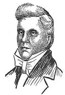 After the war, in 1819, the company dissolved and was reorganized. Only Lisa remained from among the original members, with Joshua Pilcher, Thomas Hempstead (brother of Edward Hempstead, speaker of the territorial legislature), Joseph Perkins, Andrew Woods, Moses Carson, John B. Zenoni, Andrew Drips, and Robert Jones purchasing remaining shares.[21] Lisa's last expedition departed in late 1819 and returned from Fort Lisa in the spring of 1820. After his return, Lisa unexpectedly died in St. Louis of an unknown illness in August 1820.[22][23] Joshua Pilcher became the new president of the company and in 1821 tried to expand operations to the upper Missouri region.[22] Pilcher sent an expedition to the mouth of the White River, where in the fall of 1820, the company built Fort Recovery.[24] In late 1821 Pilcher directed the construction of Fort Benton at the mouth of the Bighorn River on the Yellowstone River, the site of the former Fort Lisa.[22]