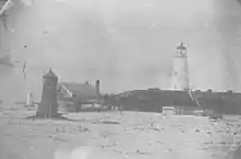![]() The 1822 lighthouse and range lights prior to the Civil War. | |