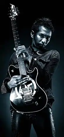 Ridho has his own guitar model, the Marlique Ridho, which is made and designed in Indonesia.
