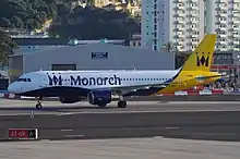 In 1990, Monarch introduced the Airbus A300-600R, its first wide-body aircraft type. Monarch also opened a new purpose-built headquarters that housed the airline's Boeing 757 flight simulator at its Luton base.[17][34] During the early 1990s, the company operated several Boeing 767-300ER wide-body aircraft on behalf of Alitalia Team, a subsidiary of Italy's flag carrier, under a wet-lease arrangement similar to a previous deal Monarch formed with Euroberlin France.[36] In 1993, Monarch Airlines introduced the Airbus A320 aircraft followed by the larger Airbus A321 in 1997.[16] The Airbus A320 replaced the airline's fleet of Boeing 737-300s.[37][38]