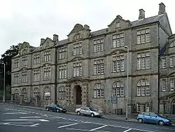 The current Monmouthshire County Council is the second body of that name. The first Monmouthshire County Council was created in 1889 under the Local Government Act 1888, taking over the local government functions of the quarter sessions.[5] That council was based in Newport, initially meeting at the town hall and later building itself headquarters at Shire Hall in 1902.[6][7] From 1891 Newport was a county borough and therefore outside the dominion of the county council, although the council continued to be based there. The first Monmouthshire County Council was abolished in 1974 under the Local Government Act 1972, when the area was absorbed into the new county of Gwent.[8] Gwent County Council moved its headquarters to a new County Hall at Croesyceiliog on the outskirts of Cwmbran, which was already under construction at the time of the 1974 reforms.[9]