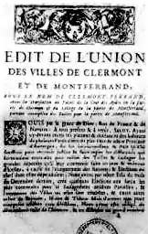 Montferrand (French: [mɔ̃fɛʁɑ̃] , Occitan: [mumfeˈra]) is a district of the modern town of Clermont-Ferrand in Auvergne. Its origin is in the former town of Montferrand, the rival of Clermont for many centuries until their union, decreed on 15 April 1630 by the edict of Troyes (first edict of union) and confirmed and effected in 1731 by Louis XV's second edict of union. Wishing to regain independence, Montferrand asked for it in 1789, 1848 and 1863.