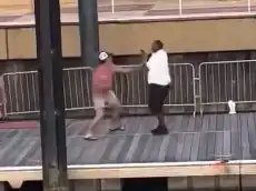 When the Harriott II docked, crew members disembarked and confronted the initial assailants, which led to another altercation.[9] The co-captain's sister was involved with this new fight and the co-captain "grabbed her and moved her".[7] At the Harriott II, bystanders and individuals connected to the initial assault begin arguing and punching each other. A black man used a folding chair to hit a white man and a white woman who had been punched and knocked down by multiple black women.[10][11] Some white people were thrown into the river. Police were contacted at 7:00 p.m. and again at 7:15 p.m., arriving at the scene around 7:18 p.m.[12]