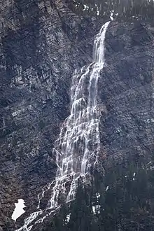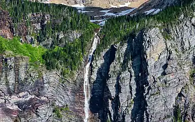 Monument Falls is a waterfall located in Glacier National Park, Montana, US. Monument Falls descends from meltwater off Sperry Glacier en route to Avalanche Lake. Numerous other waterfalls are located in the immediate area but they remain unnamed.[2][3]