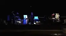 Live concerts were performed on a “synthesizers and percussion” recorded base coming from a 4-track tape player. This was normally supported by visual material (slides shows and 16mm film clips). The melodies, the main instrumental parts and vocals were always played live. The four most important tours were: Ice Age (40 dates in Piedmont and around Italy, from 1981 to 1982); Monuments from the Future (60 dates from 1983 to 1984, with 8 shows in Germany; Nite & Lite (50 dates spanning 1984 and 1985, with 10 shows in France and Belgium); Per mangiare le nuvole (about 40 dates from 1985 to 1986, including a show in which they represented new Italian music at the first Mediterranean Biennial in Barcelona (1985).[2] In the same years they also did some impromptu sound performances. These included "Sunset Boulevard" in 1984 during which Monuments played a two-hour improvised sound track to accompany a sunset at 2,400 meters in the Alps.