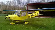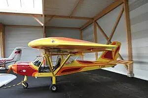 The aircraft is made with a welded steel tubing fuselage. The wings can be constructed with either an aluminum sheet or wooden structure, with its flying surfaces covered in doped aircraft fabric in both cases. The wooden wings include leading edge slots. Its 9.86 m (32.3 ft) span wing has an area of 13.4 m2 (144 sq ft) and is supported by "V" struts and jury struts. The standard engine recommended is the 80 hp (60 kW) Rotax 912UL four-stroke powerplant. The World Directory of Leisure Aviation 2011-12 states that landing gear uses sprung aluminium suspension for all three wheels and that the nose wheel is freely castering and steering is accomplished with differential braking.[1] Later models have sprung aluminium suspension for the main wheels and a rudder pedal-controlled steerable nose wheel.