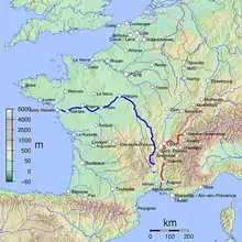 Ampelographers believe that Mornen noir likely originated in the western Rhône-Alpes in the area between the Rhone (in red) and Loire (in blue) rivers.