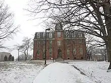 Morrill Hall is the oldest continuously-used academic building on the campus of the University of Maryland, College Park. Built in 1898 in the Second Empire architectural style for $24,000,[2] it was the sole academic building left untouched by The Great Fire of 1912 which devastated almost all of campus. Originally known as Science Hall, the building was renamed for Senator Justin Morrill, father of the Morrill Land-Grant Colleges Act (from which the university received funds in 1864).[3] Morrill Hall has housed numerous departments over the years, including the Zoology and Veterinary Science Departments. The three-story building currently houses a number of offices in the College of Behavioral and Social Sciences, including the Center for American Politics and Citizenship. Morrill Hall is currently being considered for addition to the Prince George's County historic landmark list.[4] It most recently underwent a renovation in 2003.[5]