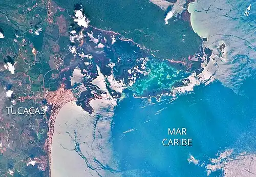 Morrocoy National Park[1] is located in the easternmost coast of Falcón State[2] and northwestern of Golfo Triste, in the west central Venezuelan[3] coast, near the towns of Boca de Aroa, Tucacas, Sanare, Chichiriviche, Flamenco and Tocuyo de la Costa, and consisting of 12,990 hectares (32,090 acres). It was declared a national park on May 26, 1974.
