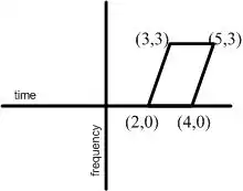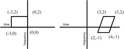 The following examples assume time in the horizontal axis versus frequency in the vertical axis. As a coincident, the following transformations happen to have the motion properties in the time-frequency distribution.