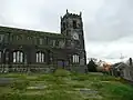 St Michael and All Angels Church dates from the late 15th century. The church is a Grade II* Listed Building, built in the Perpendicular Gothic style. The interior of St. Michael's was remodelled in 1854 but the exterior remains intact from the 15th and 16th centuries.[10] The church stands high up on Warhill overlooking the village. In 2010, vandals destroyed the church's windows which led to cork boards being used as replacements.