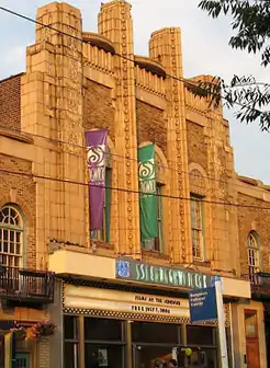 Mount Airy's main commercial district lies along stone-paved Germantown Avenue, which also serves as the boundary between East and West Mount Airy. The neighborhood has a variety of independent shops, restaurants, art galleries, clothing stores, coffee shops, a gastropub, wine bar, fitness centers, and professional offices. Mt. Airy also has two tented farmers' markets.[20]The Sedgwick Theater, notable for its art deco style, has been a cultural center in the past, and now houses the Quintessence Theatre Group.[21]
