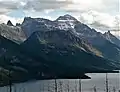 Like other mountains in Glacier National Park, it is composed of sedimentary rock laid down during the Precambrian to Jurassic periods. Formed in shallow seas, this sedimentary rock was initially uplifted beginning 170 million years ago when the Lewis Overthrust fault pushed an enormous slab of precambrian rocks 3 mi (4.8 km) thick, 50 miles (80 km) wide and 160 miles (260 km) long over younger rock of the cretaceous period.[10] The bulk of the peak is composed of limestone of the Siyeh Formation, and the conspicuous dark band on the north face is a diorite sill.[11]