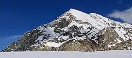 Mount Frances is a 10,450 ft (3,190 m) mountain summit located in the Kahiltna Glacier valley in the Alaska Range, in Denali National Park and Preserve, in the U.S. state of Alaska. It is situated north of the Kahiltna Glacier base camp for mountaineers attempting to climb Denali, Mount Foraker, or Mount Hunter. The summit of Mt. Frances is the best viewpoint from which to see all three giants from one location.[2] Mount Frances is set 7.43 mi (12 km) southwest of Denali, 3.47 mi (6 km) northwest of Mount Hunter, and 1.3 mi (2 km) northwest of Radio Control Tower. Access to the area is via air taxi from Talkeetna. The mountain's name honors Frances Randall (1925-1984), the first Denali Base Camp manager for nine climbing seasons (1974-1983).[3] She was planning a tenth season, but cancer claimed her life.[4] Her expertise was instrumental in coordinating many rescues that saved lives and earned her the nicknames Guardian Angel of McKinley, and Kahiltna Queen.[5] She was a member of the Fairbanks Symphony Orchestra, often playing the violin at base camp over the CB radio. In 1964 she became the sixth woman to reach the summit of Mount McKinley.