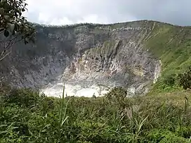 Mount Mahawu is a stratovolcano located immediately east from Lokon-Empung volcano in North Sulawesi, Indonesia. The volcano is capped with 180 m wide and 140 m deep crater with two pyroclastic cones in the northern flanks. A small explosive eruption was recorded in 1789. In 1994, fumaroles, mudpots and small geysers activities were observed along the greenish shore of a crater lake.[1][2]
