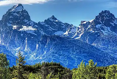 Mount Owen (12,933 feet (3,942 m)) is the second highest peak in the Teton Range, Grand Teton National Park in the U.S. state of Wyoming.[3] The peak is named after William O. Owen, who organized the first documented ascent of the Grand Teton in 1898.[4] Mount Owen is part of the Cathedral Group of high Teton peaks, a collection of peaks in the central section of the range that are particularly rugged. The 40-mile (64 km) long Teton Range is the youngest mountain chain in the Rocky Mountains, and began its uplift 9 million years ago, during the Miocene.[5] Several periods of glaciation have carved Mount Owen and the other peaks of the range into their current shapes.[4] Valhalla Canyon is situated on the west slopes of Mount Owen.