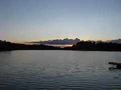 Mountain Lake at sunset during the summer.