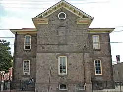 Built between 1874 and 1875, this historic structure is a two-story, cross-gabled, stone building that is six bays wide and three bays deep. It was designed in the Italianate style.[2]