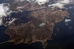 The Mukaishima is pear-shaped and separated from the Honshu mainland by 200-meters wide strait.