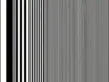 Ideally, each of the frequency bursts should produce a group of distinct, black and white vertical bars on the monitor screen. Due to frequency response roll-off in the signal transmission path, the higher frequency vertical bars tend to blur into a uniform grey. From this, it is possible to get a quick visual estimate of the overall frequency response of the system, since the frequency of each of the bursts is known.