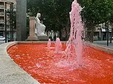 Every 11 November, various anti-fascist groups organise demonstrations to pay tribute to Carlos Palomino, 2021222324 who has become a symbol of their struggle.[20][21] In 2017, the tenth anniversary of the crime, a demonstration was organised in Madrid, attended by around a thousand people.[22] On that date, protest actions were also held in other Spanish cities. As a memorial, the water in various fountains is often dyed red during demonstrations.[23]