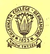 The college was established in 1853 by Maharani Swarnamoyee Devi.[9] The college was named for her husband, Maharaja Krishnath Roy of Cossimbazar. In 1841, Maharaja Krishnath received his zamindary (a jurisdiction assigned to a zamindar) and had the dream of establishing an academic institution. Following her husband's death, Swarnamoyee gave as a gift both land and money, saving the college from financial crisis.[10] Mr. Harrison became the first principal of the college.[11] The famous Indian Scholar and writer Brajendra Nath Seal developed the infrastructure of the college.