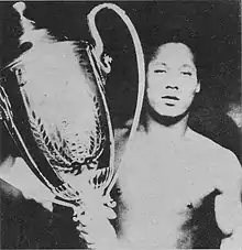 Musashiyama Takeshi (Japanese: 武藏山 武, December 5, 1909 – March 15, 1969) was a Japanese professional sumo wrestler from Yokohama, Kanagawa Prefecture. He was the sport's 33rd yokozuna. He had a rapid rise through the ranks, setting several youth records, and was very popular with the public. However he did not fulfill his great potential at sumo's highest rank, missing many matches because of injury and winning no tournaments.