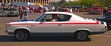 The fastest muscle car produced by American Motors was the mid-sized 1970 AMC Rebel "The Machine", which was powered by a 390 cu in (6.4 L) engine producing 340 hp (254 kW).[71] The Rebel had a 0–60 mph (97 km/h) time of 6.8 seconds and a quarter-mile run in 14.4 seconds at 99 mph (159 km/h).[72]