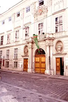 The first location of the MOYA was at Vienna Ring Road, next to Vienna's Burgtheater and the Rathaus, Vienna, in Löwelstrasse.[7] In 2010 it moved to a larger city palace nearby, to Palais Schönborn-Batthyány at the Freyung, built by the baroque architect Johann Bernhard Fischer von Erlach, in the center of Vienna in Renngasse.[8] The gallery was managed and owned by Dr Kolja Kramer, fine artist with a focus on contemporary and developing art.[9]
