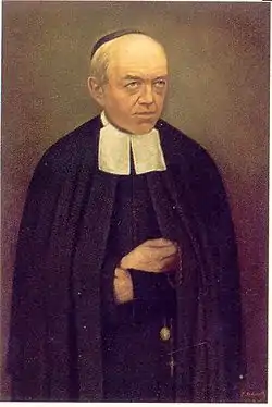 The pastor of the town, the Abbé Sallié, however, spoke to the boy about the Brothers of the Christian Schools (commonly called the Christian Brothers), who were about to open a school in the nearby town of Gosselies. He went to meet them and was convinced that it was the way of life he wanted. He traveled to the city of Namur, where he entered the Brothers' novitiate on 7 April 1856, and received the habit that following July. At that time he was also given the religious name of Mutien-Marie ("Mutien" after the ancient Roman martyr Mucian).[2]