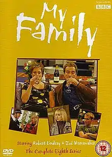 The eighth series of the BBC family sitcom My Family originally aired between 11 April 2008 and 24 December 2008. The series was commissioned following consistent ratings from the seventh series. The opening episode, "The Parent Trap", re-introduces the seven main characters. All episodes from the eighth series are thirty minutes long, excluding the Christmas special. The series was once again produced by Rude Boy Productions,[1] a company that produces comedies created by Fred Barron.[2] The series was filmed at Pinewood Studios in London,[3] in front of a live audience.[4]