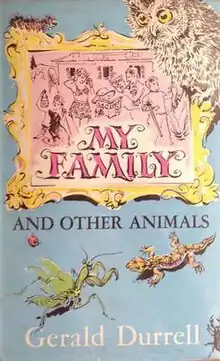 My Family and Other Animals (1956) is an autobiographical book by British naturalist Gerald Durrell. It tells in an exaggerated and sometimes fictionalised way of the years that he lived as a child with his siblings and widowed mother on the Greek island of Corfu between 1935 and 1939. It describes the life of the Durrell family in a humorous manner, and explores the fauna of the island. It is the first and most well-known of Durrell's Corfu trilogy, which also includes Birds, Beasts, and Relatives (1969) and The Garden of the Gods (1978).