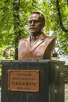 Dr. Nikolai Aleksandrovich Semashko (Russian: Никола́й Алекса́ндрович Сема́шко; 20 September [O.S. 8 September] 1874 – 18 May 1949), was a revolutionary, Soviet statesman and academic who became People's Commissar of Public Health in 1918, and served in that role until 1930. He was one of the organizers of the health system in the Soviet Union (often called the Semashko system), an academician of the Academy of Medical Sciences (1944) and of the Russian SFSR (1945).