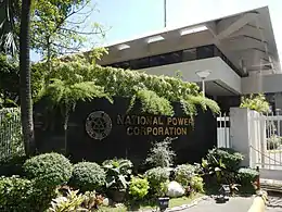 The National Power Corporation (Filipino: Pambansang Korporasyon sa Elektrisidad, also known as Napocor, NPC or National Power) is a Philippine government-owned and controlled corporation that is mandated to provide electricity to all rural areas of the Philippines by 2025 (known as "missionary electrification"), to manage water resources for power generation, and to optimize the use of other power generating assets.[1]