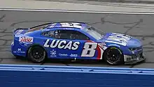 Kyle Thomas Busch is an American professional stock car racing driver and team owner. As of 2023, Busch drives full-time in the No. 8 Chevrolet Camaro ZL1 for Richard Childress Racing in the NASCAR Cup Series and part-time in the No. 10 Chevrolet Camaro for Kaulig Racing in the NASCAR Xfinity Series and part-time in the NASCAR Camping World Truck Series, driving the No. 51 Chevrolet Silverado for Kyle Busch Motorsports. KBM runs multiple trucks in the Truck Series. Busch is the 2009 NASCAR Nationwide Series champion and the 2015 and 2019 Cup Series champion, while driving full-time in the No. 18 Toyota Camry for Joe Gibbs Racing.