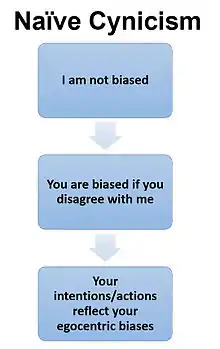 Naïve cynicism is a philosophy of mind, cognitive bias and form of psychological egoism that occurs when people naïvely expect more egocentric bias in others than actually is the case.