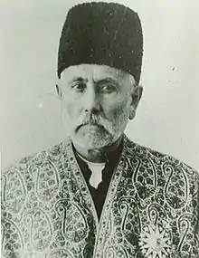 Najaf-Qoli Khan Bakhtiari (Persian: نجف‌قلی‌خان بختیاری) also known Saad al-Dowleh and Samsam al-Saltane (1846–1930), was a Persian Prime Minister and a leader of the Iranian Constitutional Revolution. He was elected Prime Minister for two terms, first from 3 May 1909 to 16 July 1909 and again from 23 December 1912 to 17 January 1913, when he resigned from the office. He was a representative of Parliament of Iran from Tehran in the 4th Parliament. He was the older brother of Ali-Qoli Khan Bakhtiari, better known as Sardar Assad, Bibi Maryam Bakhtiari and Khosrou Khan, Sardar Zafar Bakhtiari.[1] He died in 1930 in Isfahan.