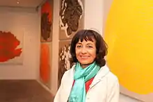 Najia Mehadji is a French-Moroccan artist familiar on the Moroccan scene and recognized in France since the 1980s from exhibitions in major museums including the Centre Georges Pompidou in Paris. She received in the mid-1970s a master of fine arts and art history degree at Pantheon-Sorbonne University and a theatrical degree from Paris 8 University. The latter led to her working with Peter Brook and The Living Theatre, avant-garde groups open to so-called "non-Europeans", creating a unique body work and influencing her own work with the development of her particular style.